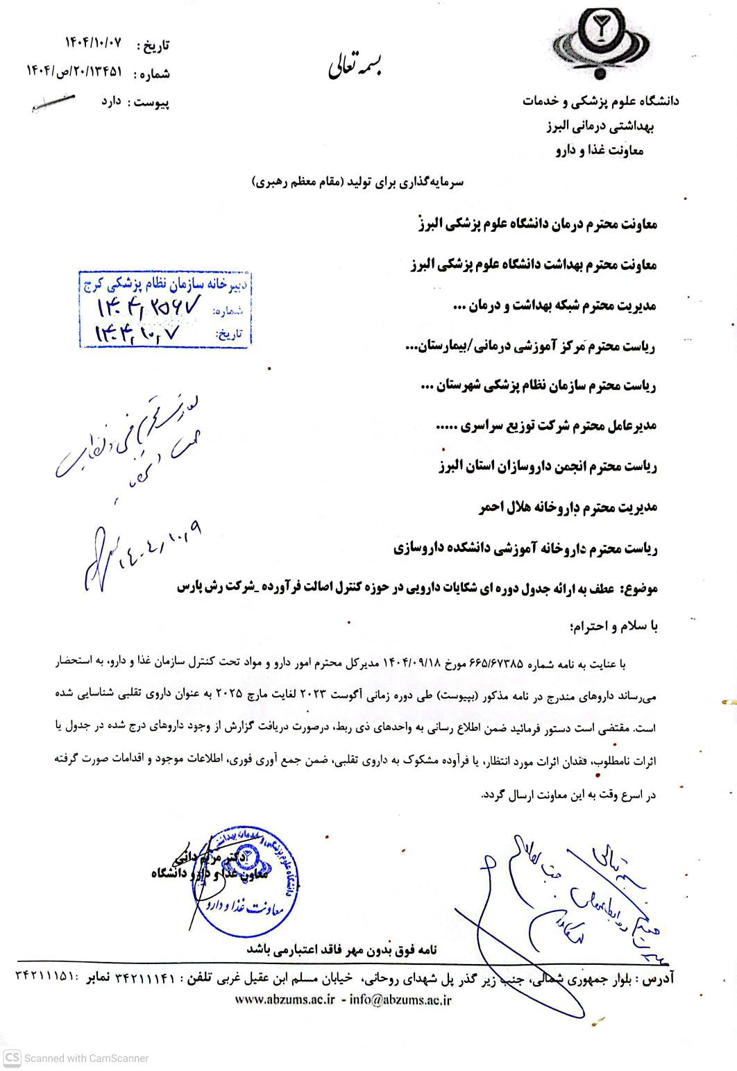 ♦️نامه مدیرکل محترم امور دارو و مواد تحت کنترل سازمان غذا و دارو با موضوع ارائه جدول دوره...