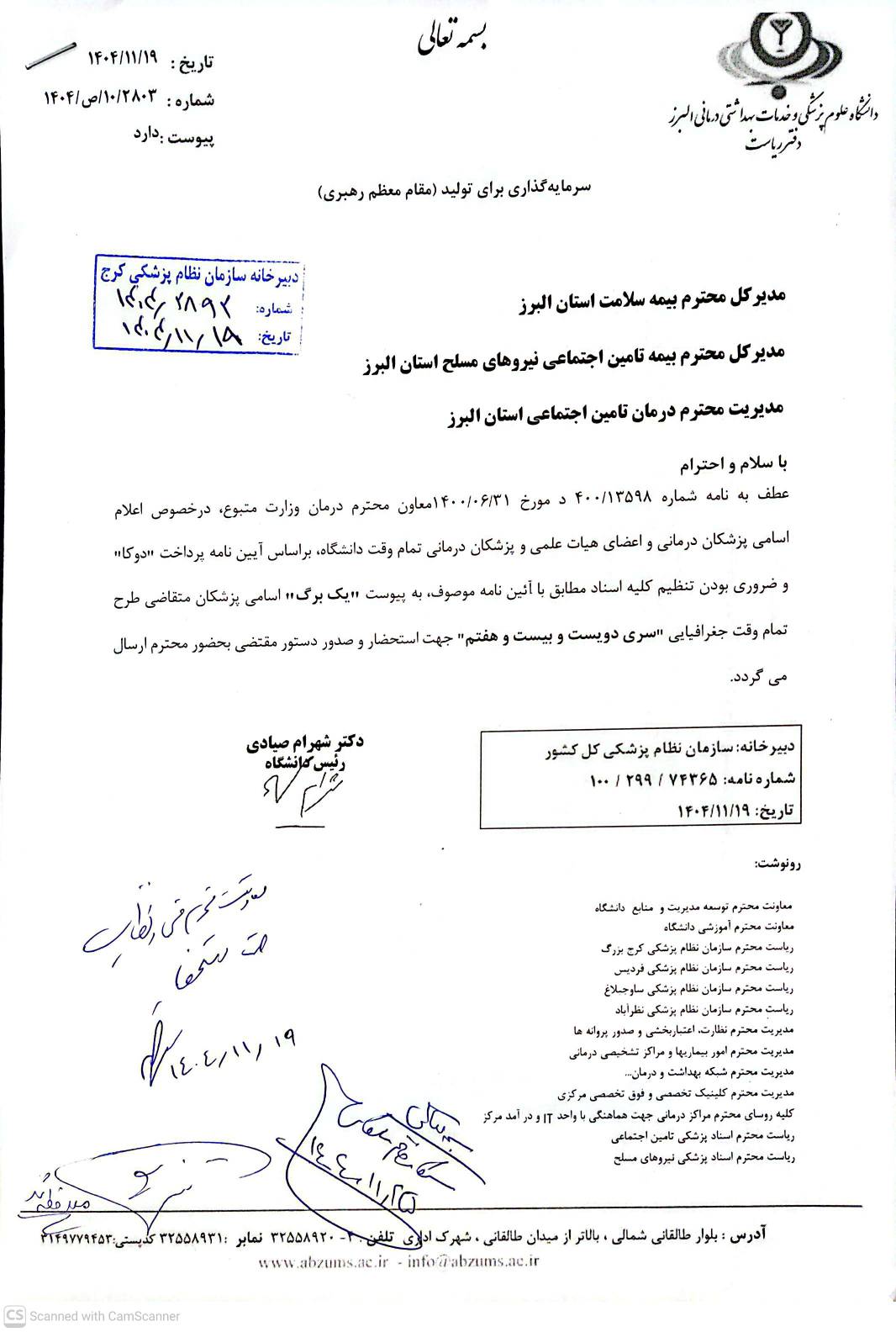 هیات مدیره نظام پزشکی کرج امروز بیست و سوم شهریور به ریاست دکتر صداقت و با حضور همه...