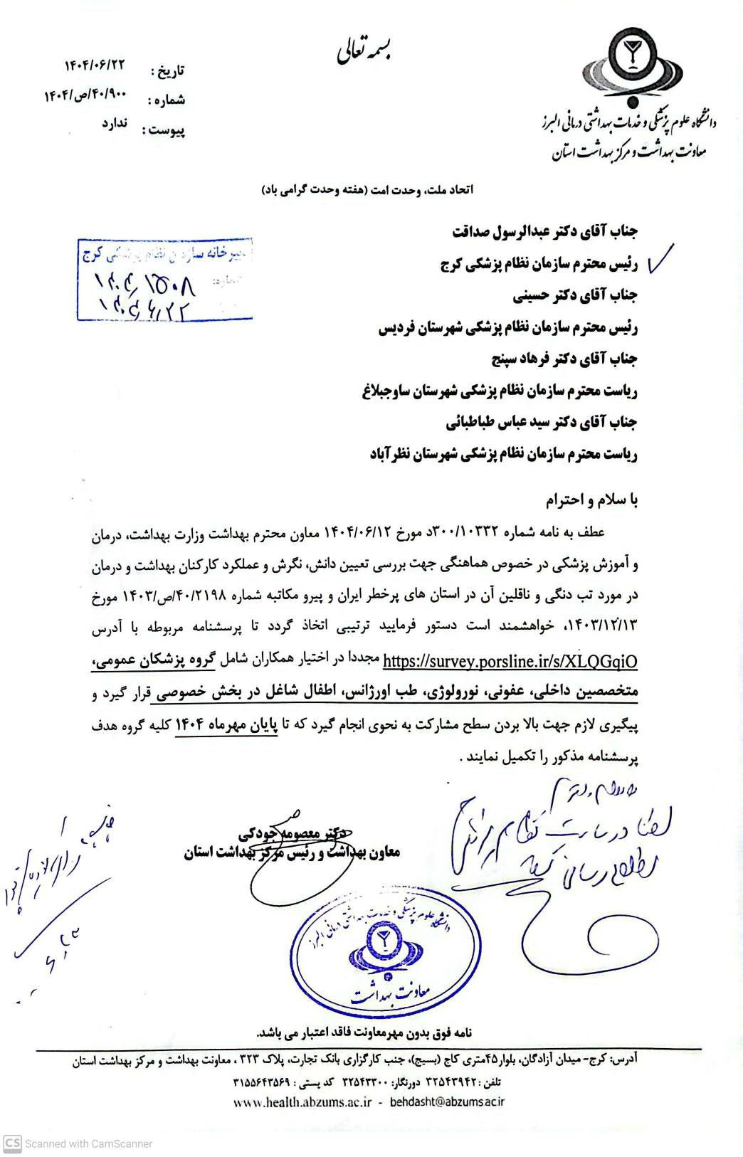♦️نامه معاون محترم بهداشت وزارت بهداشت،درمان و آموزش پزشکی در خصوص هماهنگی جهت بررسی تعیین...