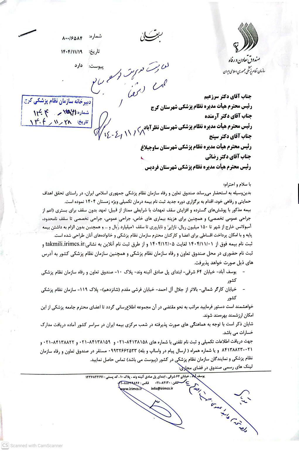 ♦️نامه مدیرعامل صندوق تعاون رفاه سازمان نظام پزشکی جمهوری اسلامی ایران در خصوص اقدام به...