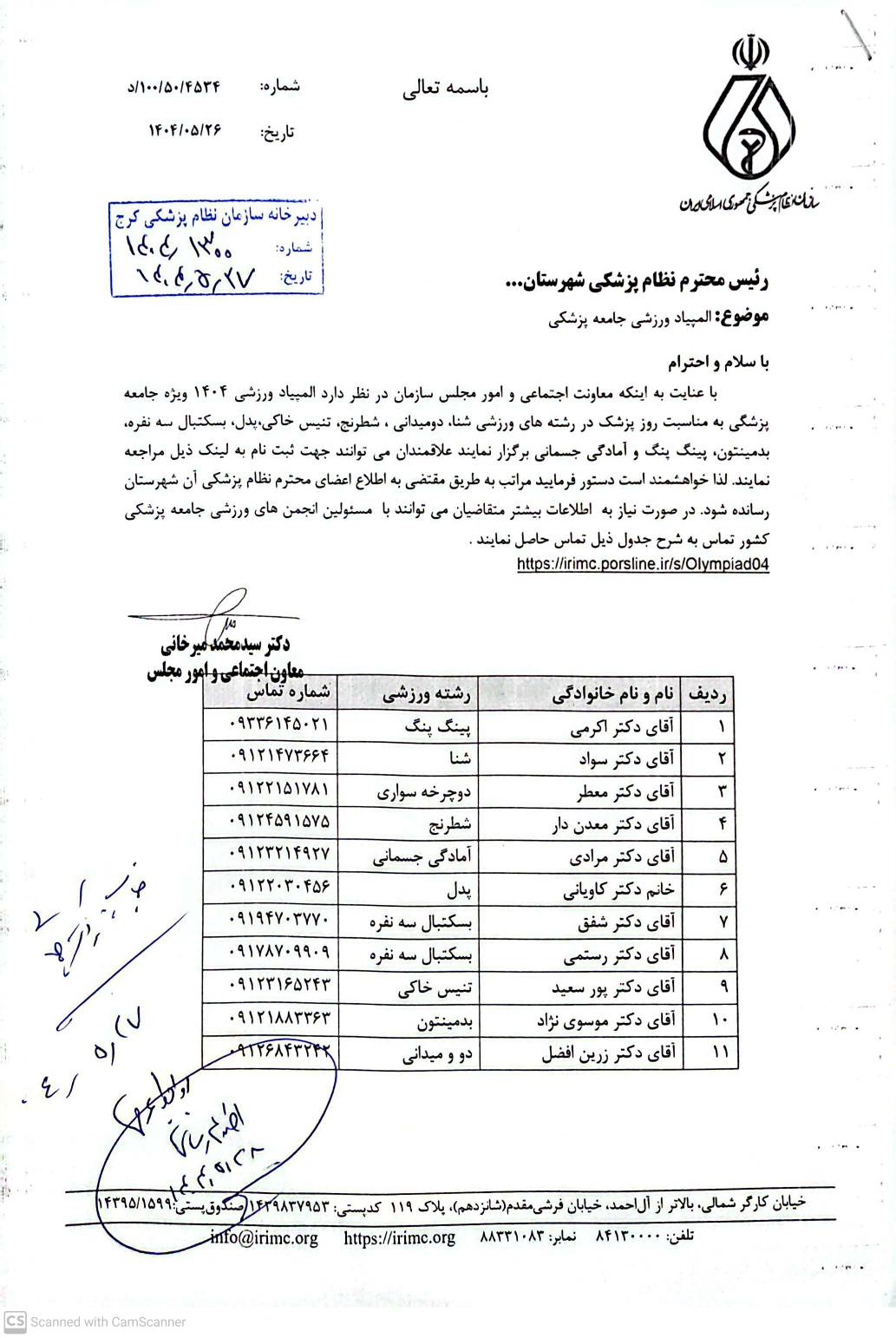 ♦️المپیاد ورزشی جامعه پزشکی ۱۴۰۴ به مناسبت روز پزشک ✒️روابط عمومی نظام پزشکی کرج بزرگ