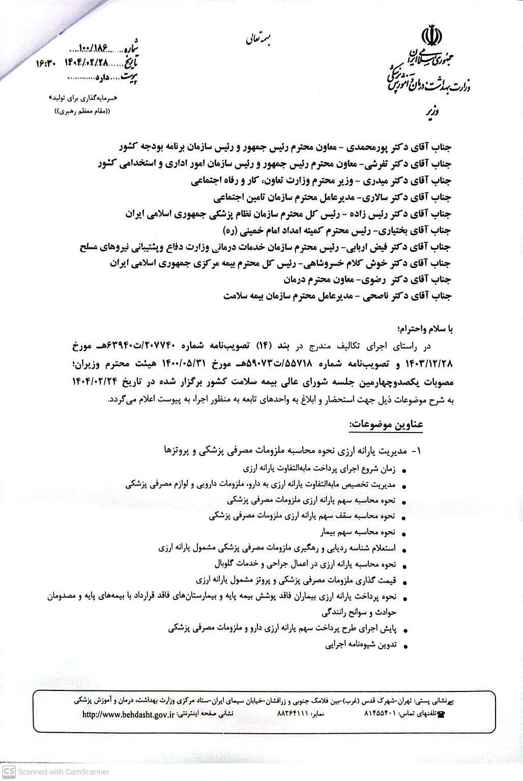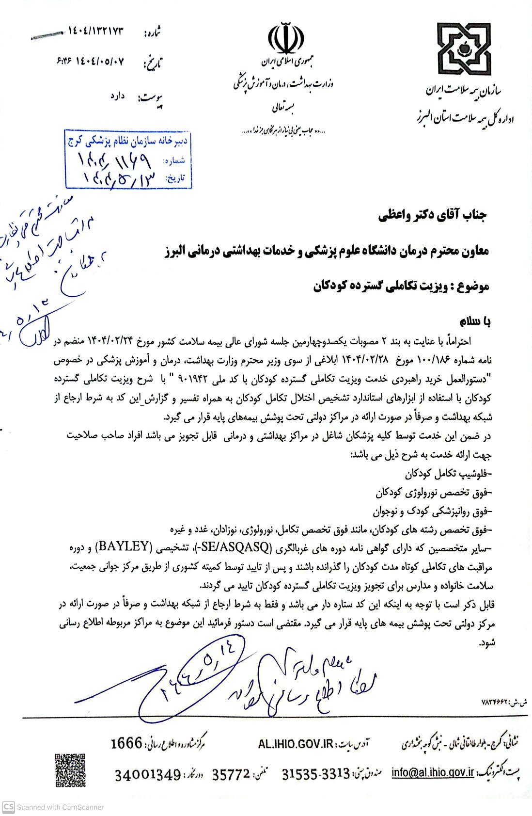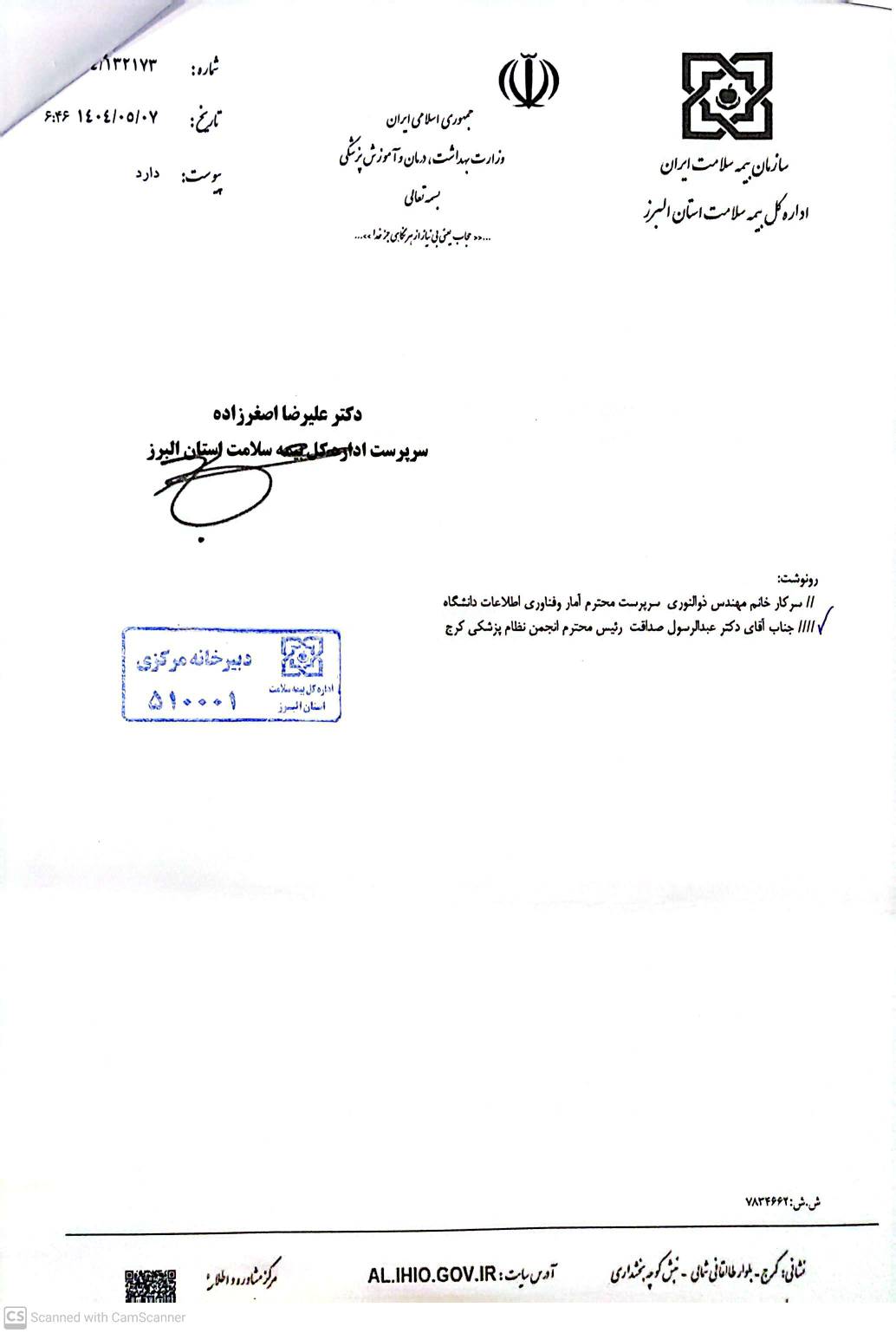 ♦️نامه ریاست محترم مرکز آموزشی درمانی شهید رجایی در خصوص واحد تخصصی طب کار در محل کلینیک...