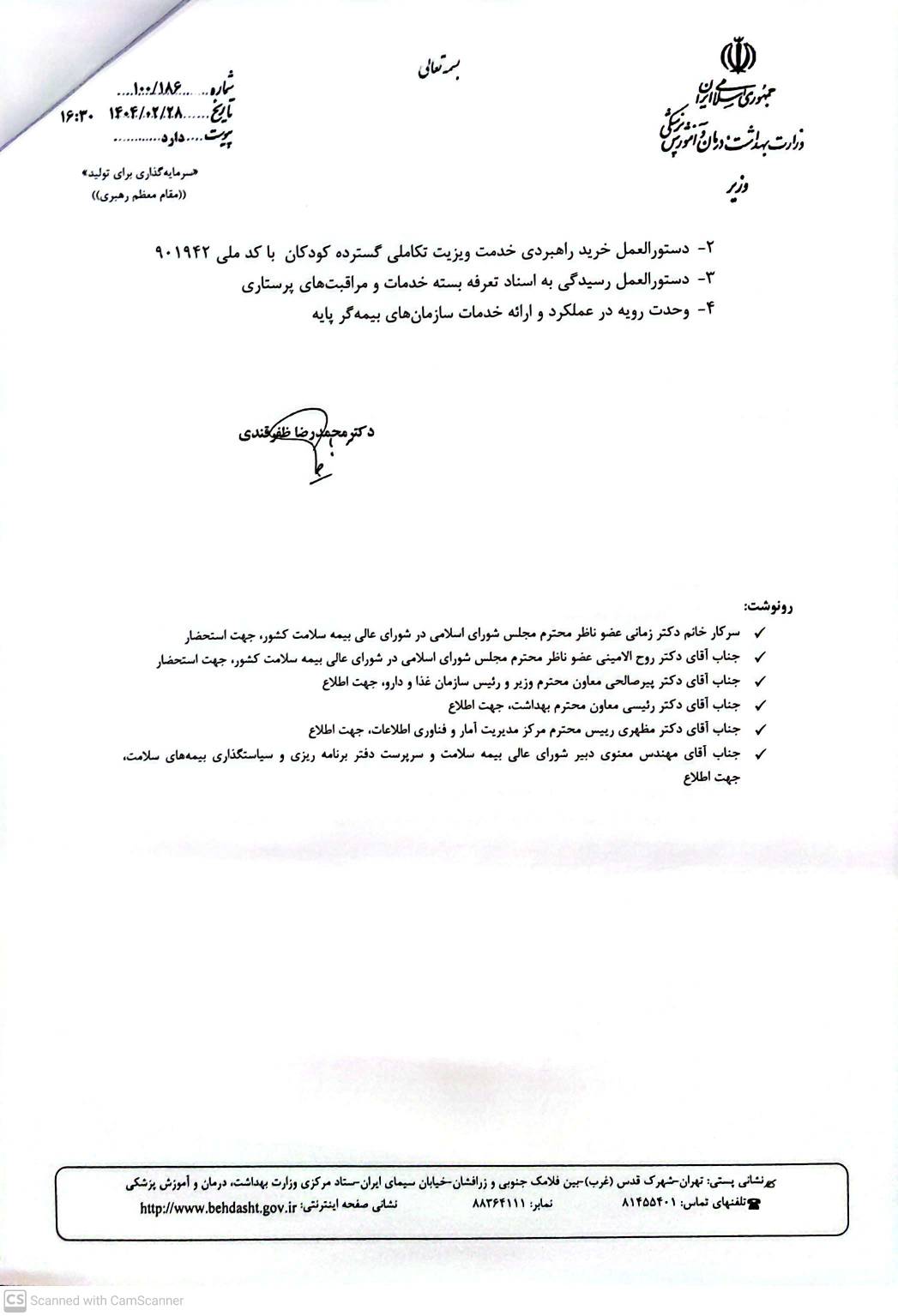 ♦️مصوبات یکصدوچهارمین جلسه شورای عالی بیمه سلامت کشور با موضوع ویزیت تکاملی گسترده کودکان
