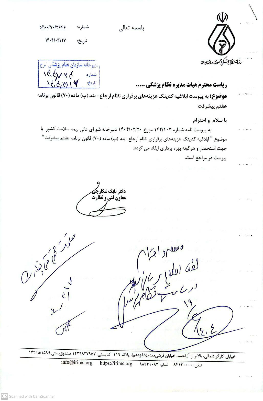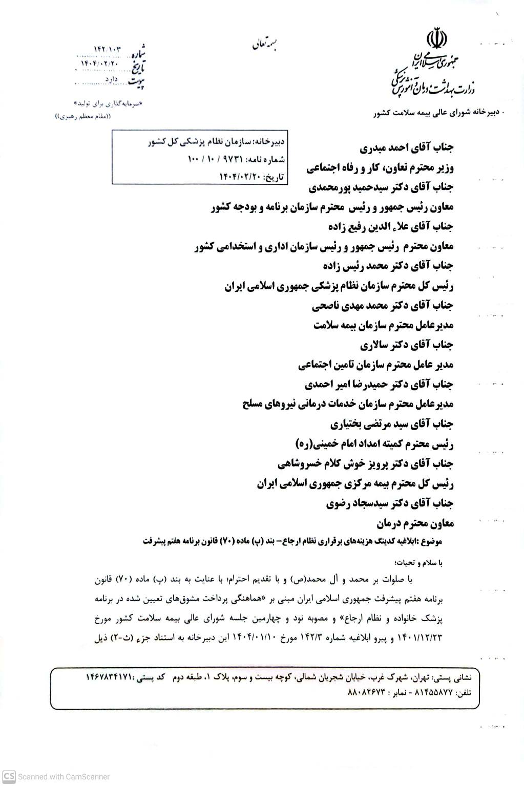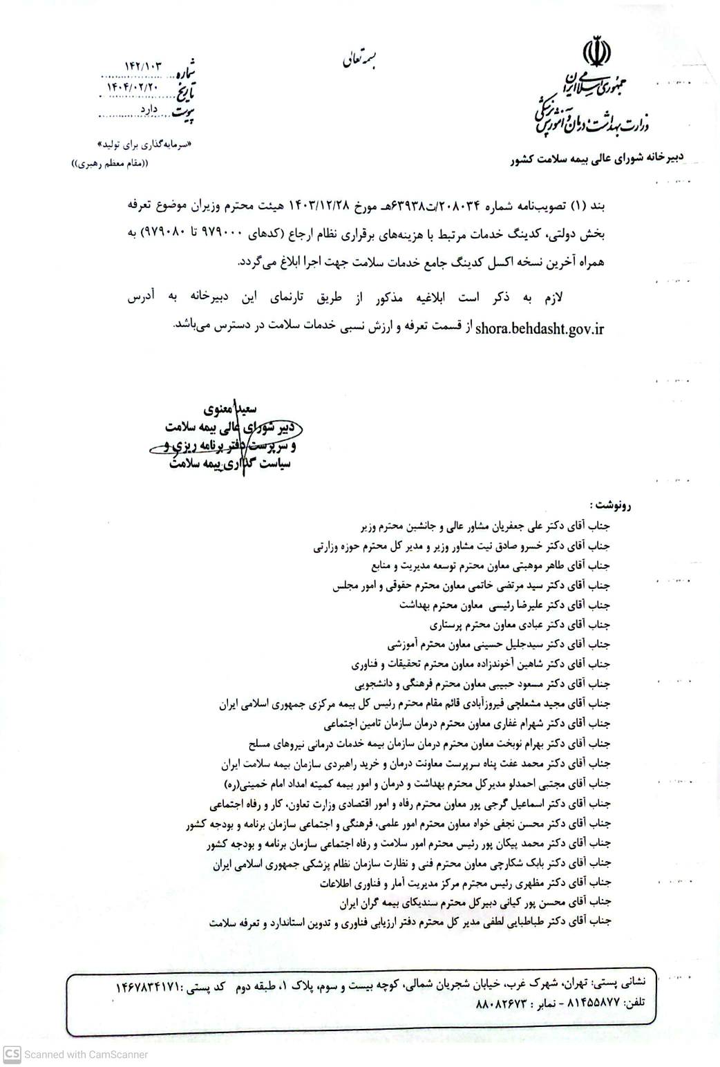 ♦️نامه دبیرخانه شورای عالی بیمه سلامت کشور با موضوع ابلاغیه کدینگ هزینه های برقراری نظام ارجاع