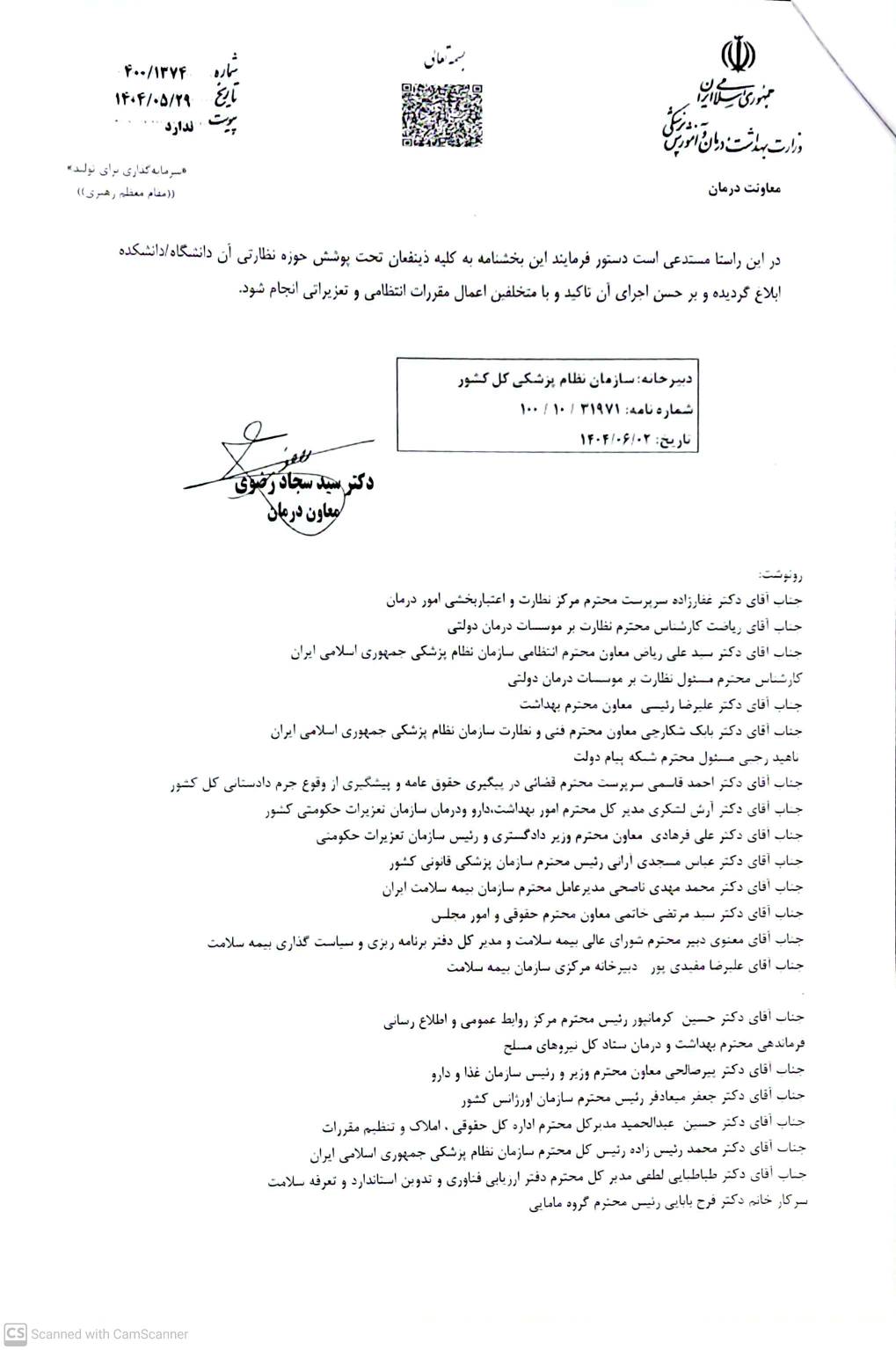 ♦️نامه معاون محترم وزارت بهداشت،درمان و آموزش پزشکی در خصوص معیارهای افزایش رضایتمندی مردم از حوزه درمان