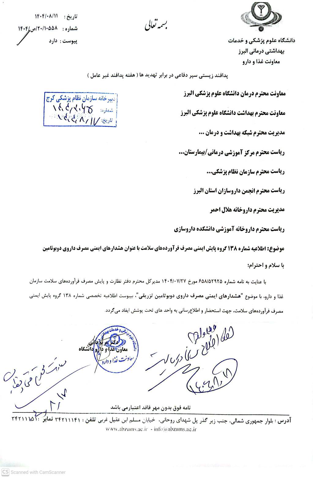 ♦️نامه مدیرکل محترم دفتر نظارت و پایش مصرف فرآورده های سلامت سازمان غذا و دارو با موضوع...