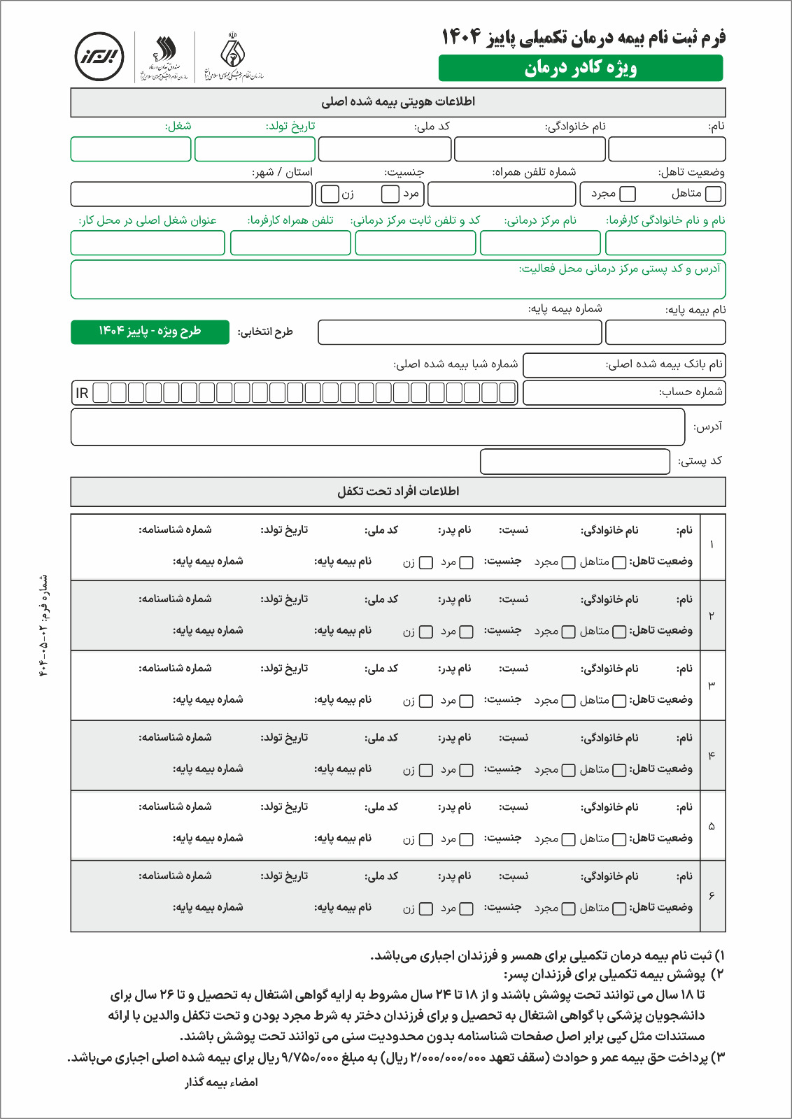 ***ثبت نام افراد تحت تکفل برای آقایان الزامی و برای خانم ها اختیاری می باشد.