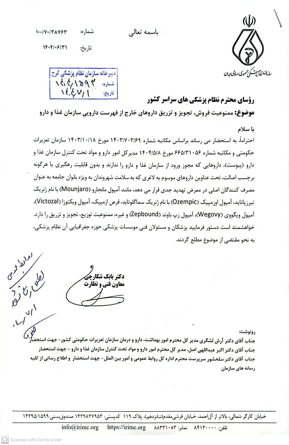 ♦️نامه معاون فنی و نظارت با موضوع ممنوعیت فروش،تجویز و تزریق داروهای خارج از فهرست دارویی سازمان غذا و دارو
