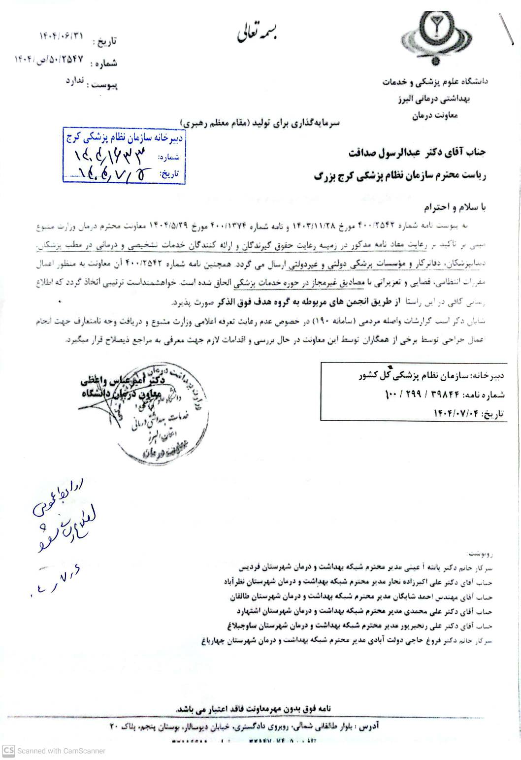 ✒️روابط عمومی نظام پزشکی کرج بزرگ