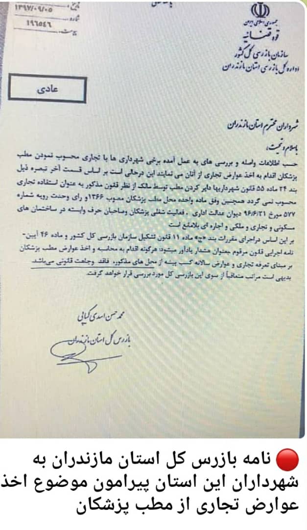 ♦️نامه معاون محترم درمان وزارت متبوع با موضوع ابلاغ تعرفه اعمال و خدمات تشخیصی و درمانی...