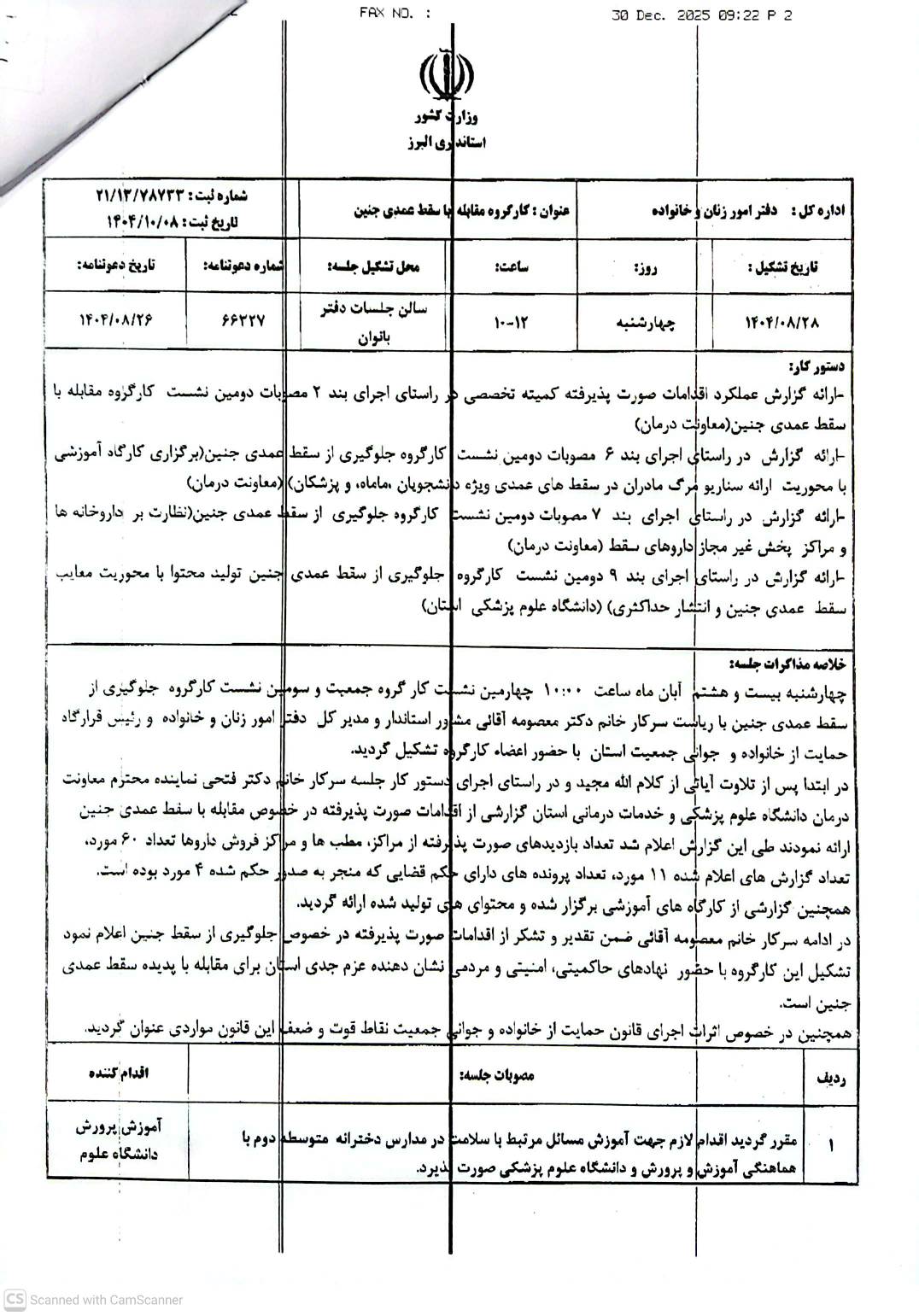 چهارمین نشست کارگروه تخصصی جمعیت و سومین کارگروه مقابله با سقط جنین