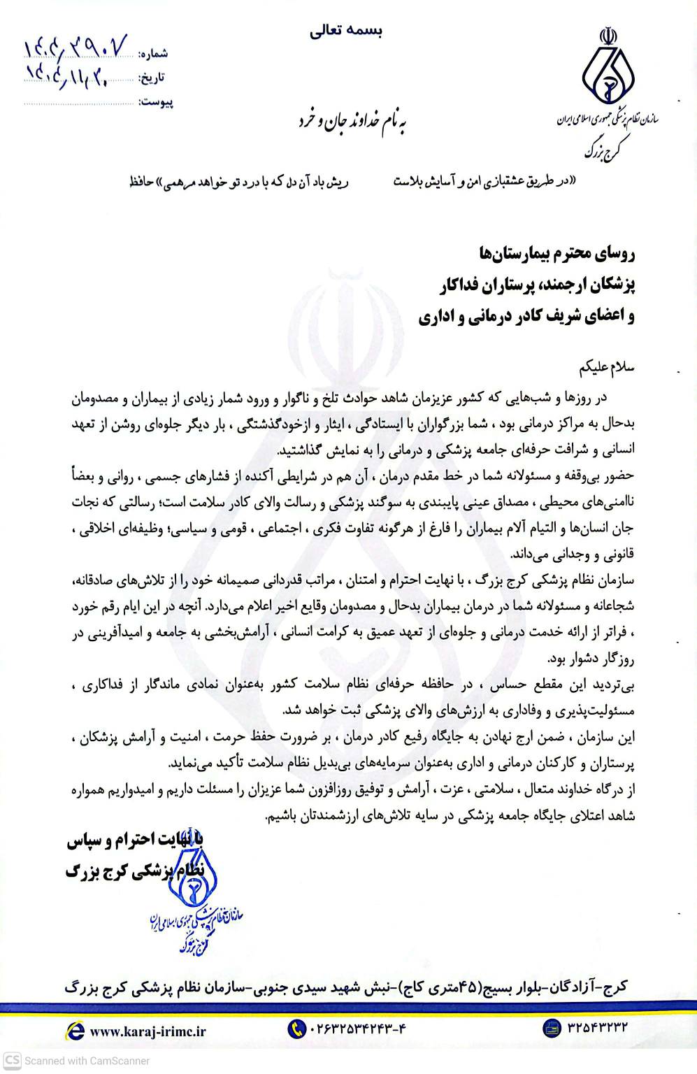 تقدیر و تشکر نظام پزشکی کرج بزرگ