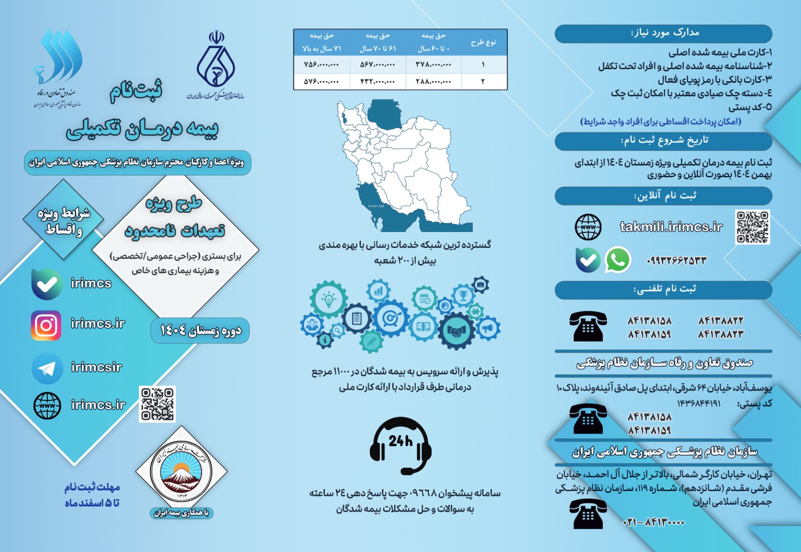 به اطلاع می رساند ثبت نام بیمه درمان تکمیلی ایران آغاز شد.