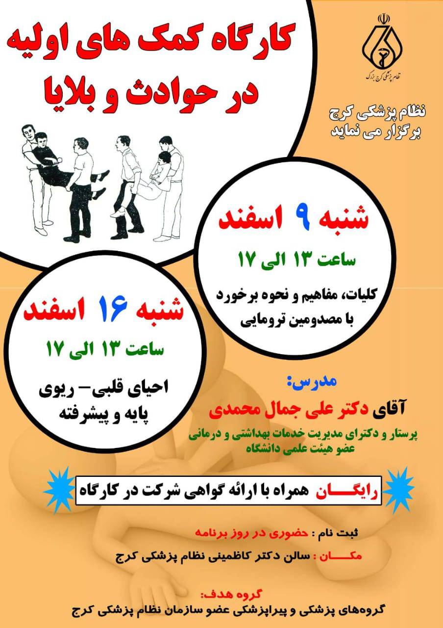 ♦️کارگاه کمک های اولیه در حوادث و بلایا